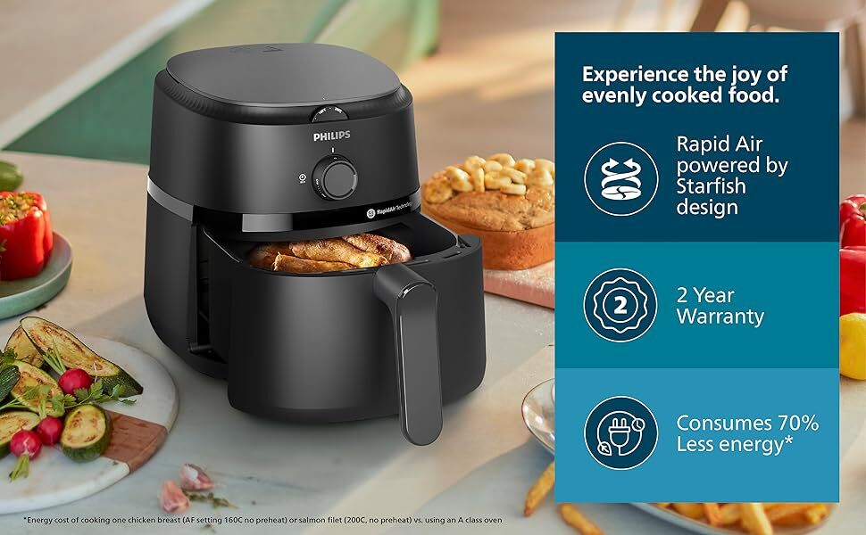 | Technology | Rapid Air Technology (for healthier frying with up to 90% less fat) | |