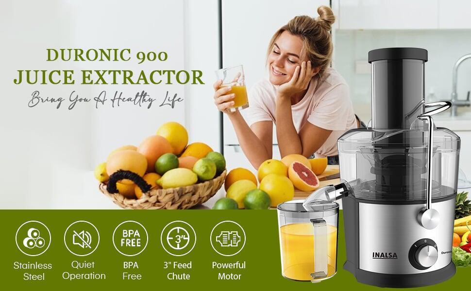 Powerful 900W Motor: The INALSA Juicer features a high-speed 900W motor that extracts juice from fruits and vegetables in just 8 seconds, making it perfect for quick, healthy mornings.