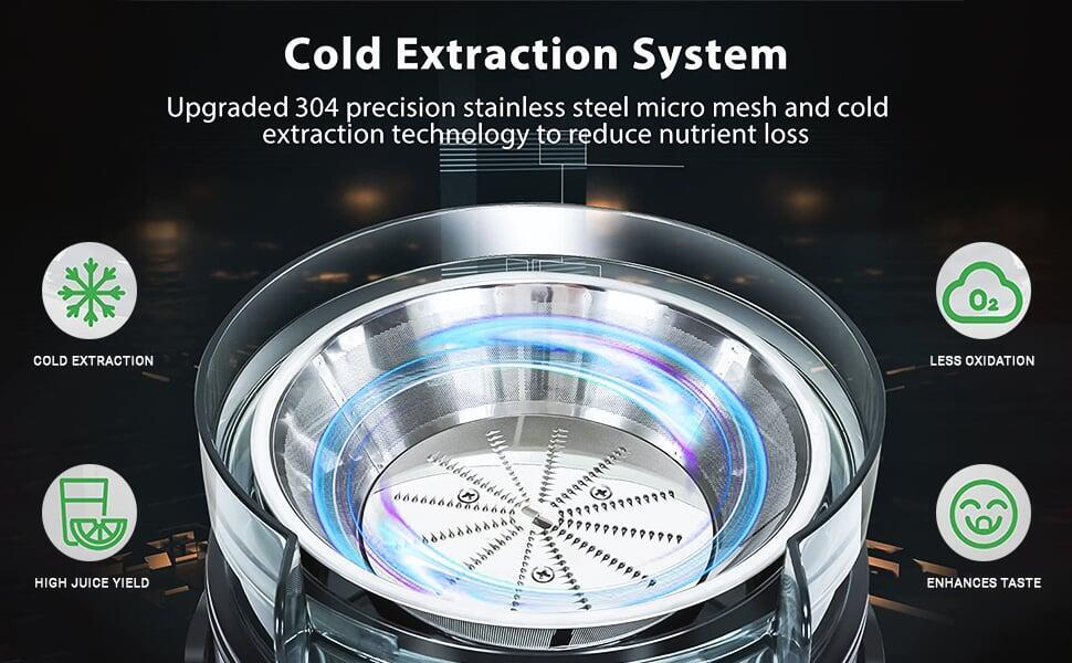 High Juice Yield: The combination of a 304 stainless steel high-density filter and anti-corrosion multi-head blades ensures up to 30% more juice compared to other centrifugal juicers.