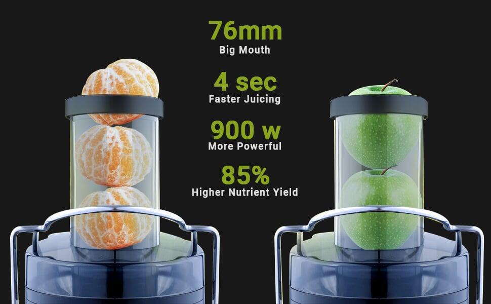 Extra-Wide 3.0-inch Feeding Tube: Cut your fruits minimally and drop them directly into the juicer—even medium-sized apples fit without dicing, making juicing faster and easier.
